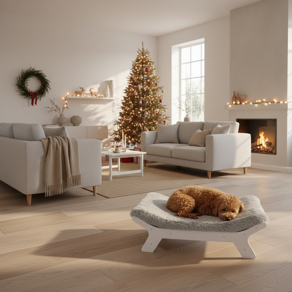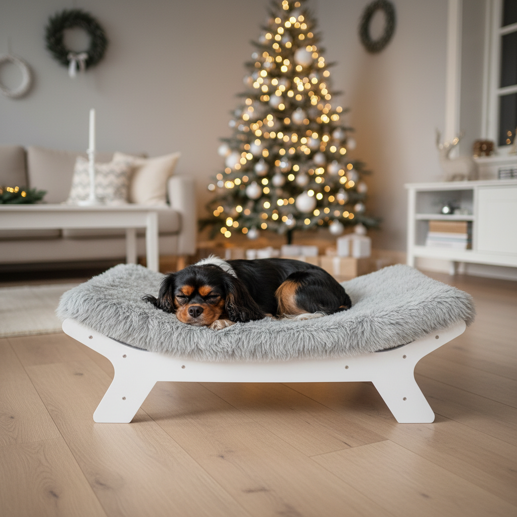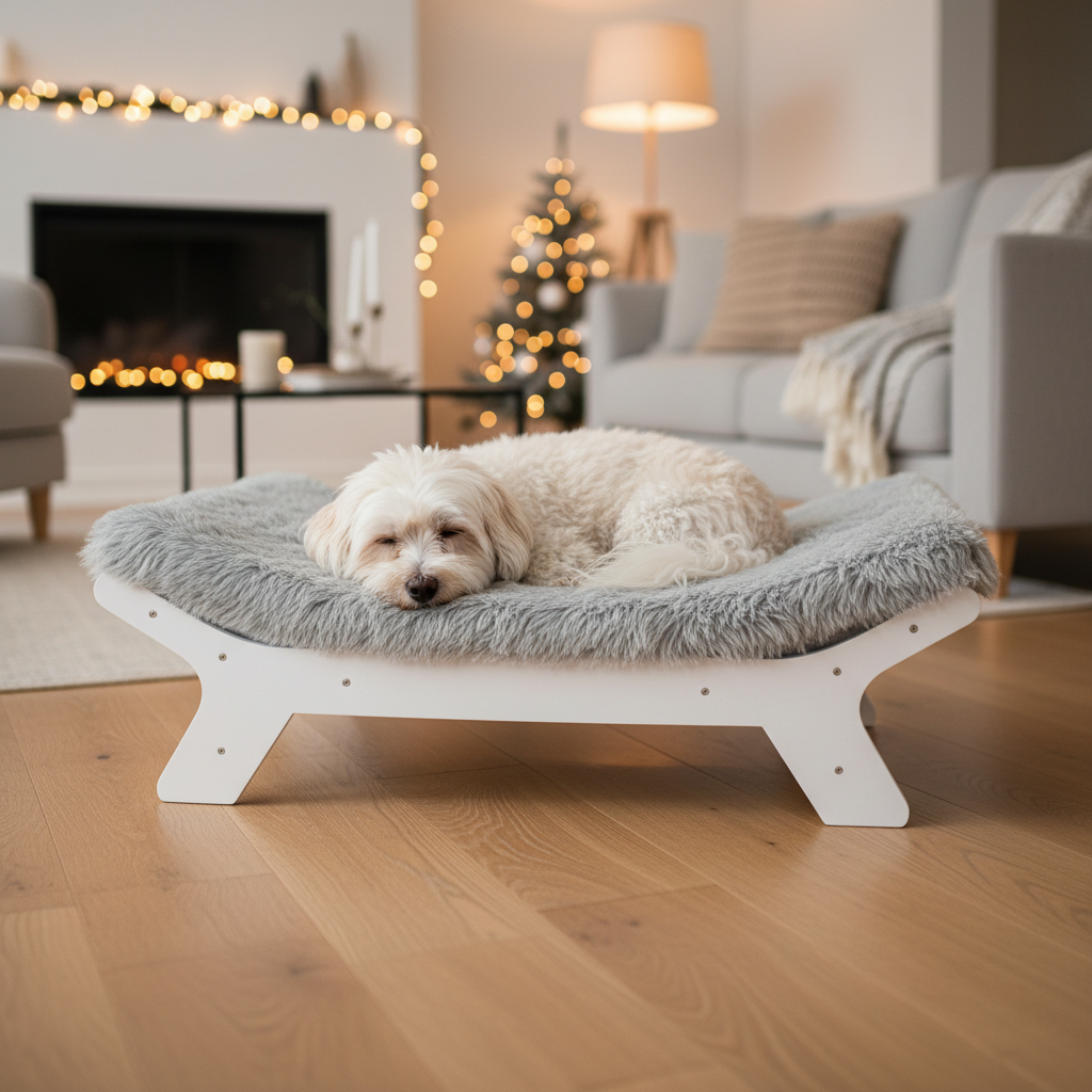 ✯ Sturdy Wooden Frame – White wooden dog bed frame, durable and available in three sizes.