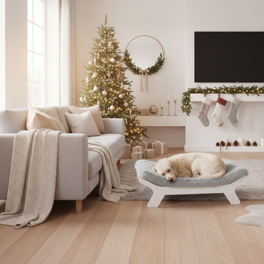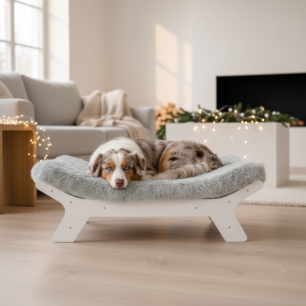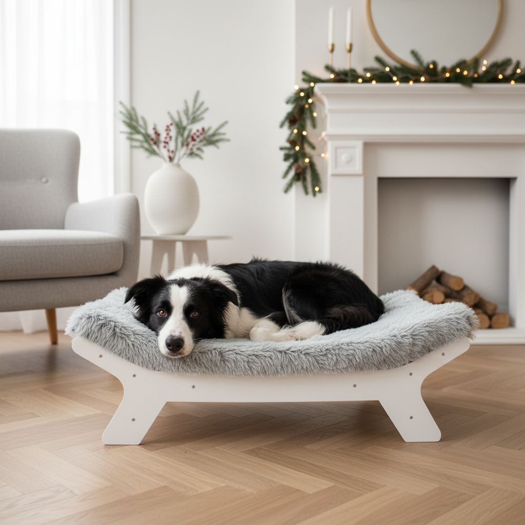 ✯ Sturdy Wooden Frame – White wooden dog bed frame, durable and available in three sizes.