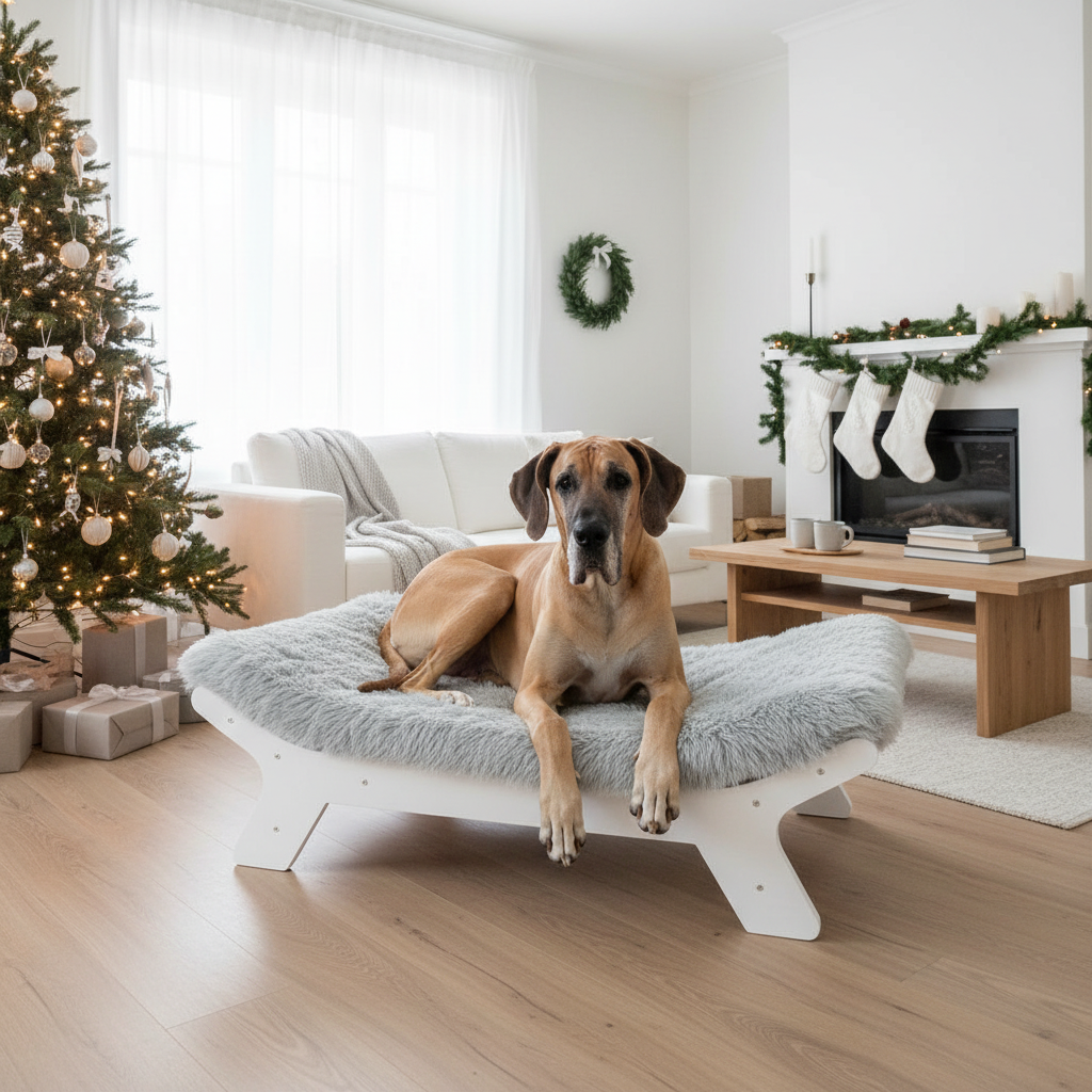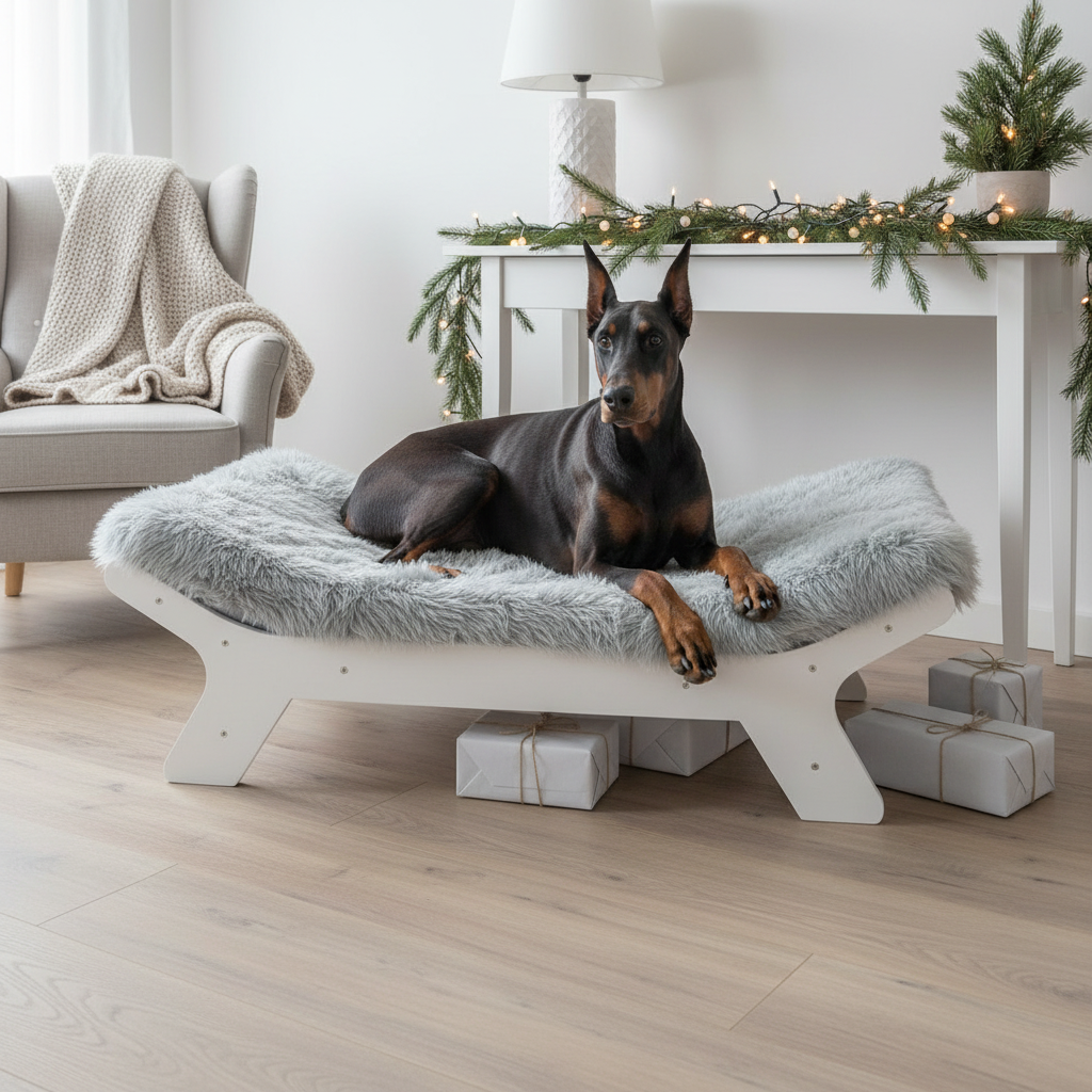 ✯ Sturdy Wooden Frame – White wooden dog bed frame, durable and available in three sizes.